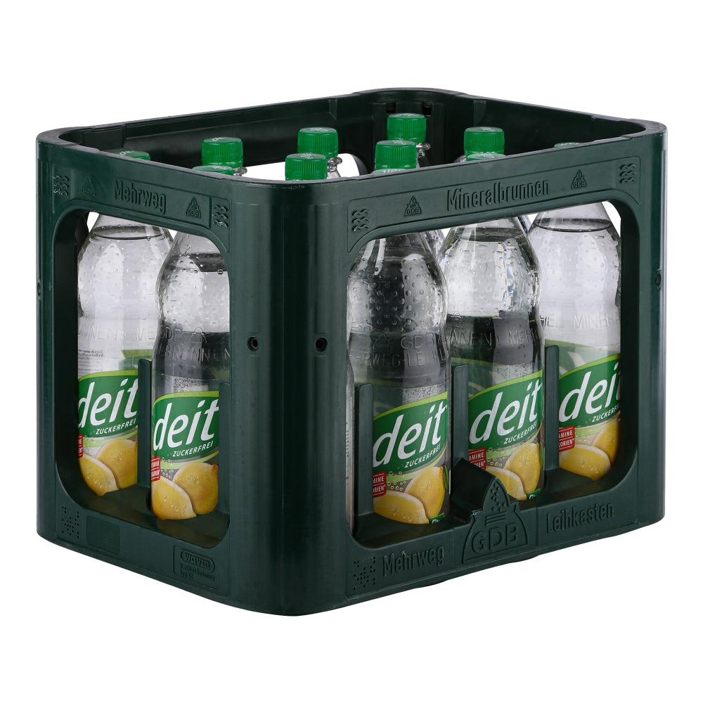 Natürliches Mineralwasser, Kohlensäure, Säuerungsmittel Citronensäure, Zitronensaftkonzentrat, Säureregulator Trinatriumcitrat, Süßungsmittel Natriumcyclamat, Acesulfam K, Aspartam*, Natriumsaccharin und Sucralose, natürliches Aroma, Vitaminmischung (Pantothenat, Vitamin B6, Biotin, Vitamin B12). *enthält eine Phenylalaninquelle